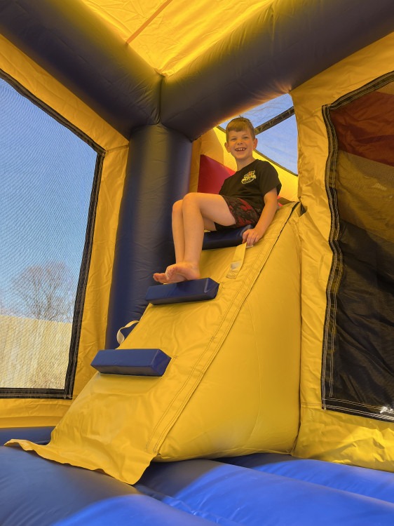 Kids enter the roomy bounce area, jump and bounce inside, enjoy the built-in basketball hoop, then climb up and slide down for nonstop fun. With plenty of space to play, this unit keeps kids moving, smiling, and entertained from start to finish.