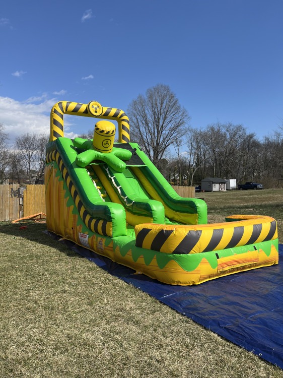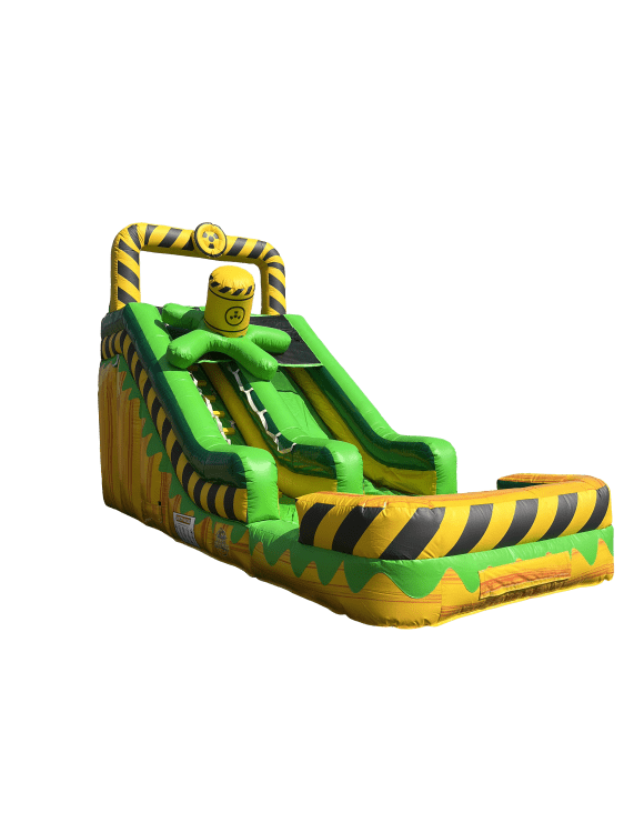 Get ready for high-energy fun with the Atomic Splash Water Slide! This bold 16-foot inflatable water slide delivers a thrilling ride as riders climb to the top and race down the slick, speedy slide into a refreshing splash pool below. With its vibrant green and yellow design, Atomic Splash is a show-stopping centerpiece that brings excitement to backyard parties, birthdays, and summer events.